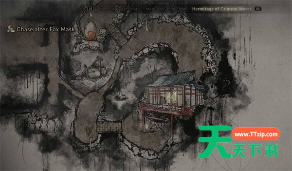 3、谜题完成后水域变红,返回表世界后可在稻荷神社右侧水盆处净化灵刀。