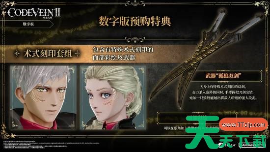 预购附赠特典:术式刻印的面部彩绘和武器“孤狼双剑”。