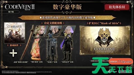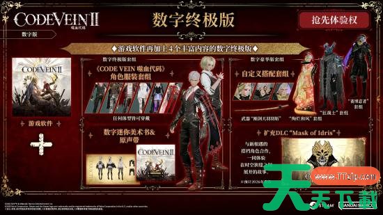 数字终极版售价468元,可在游戏正式发售3天前游玩,包含数字豪华版内容、数字终极版套组(以前作《噬血代码》登场的搭档角色服装为概念的服装套组,收录服装共有6种:伊奥、路易、八云、米亚、杰克、艾娃)和数字迷你美术书&原声带。