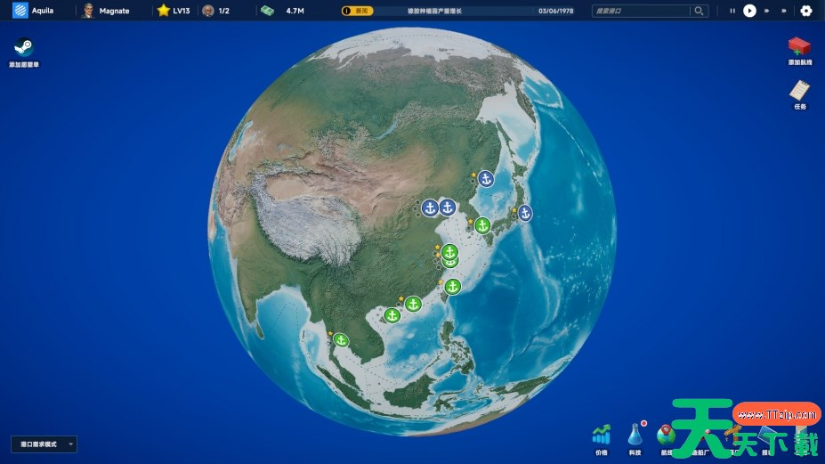 《海运大亨》是一款航海模拟经营游戏。玩家将从零开始打造商业帝国,通过洞察全球港口供需,精心规划利润航线。在风云变幻的航运市场中运筹帷幄,用智慧与魄力书写属于你的航海传奇!
