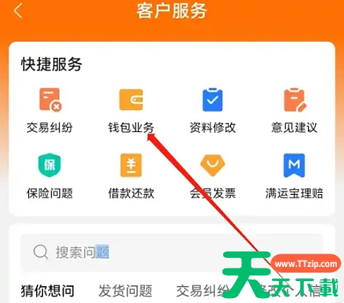打开安卓版货扯温车帮货主的客户服务页面,点击钱包业务。