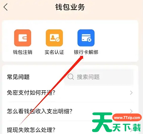 打开安卓版货车帮货主的钱包业务页面,点击银行卡解绑。