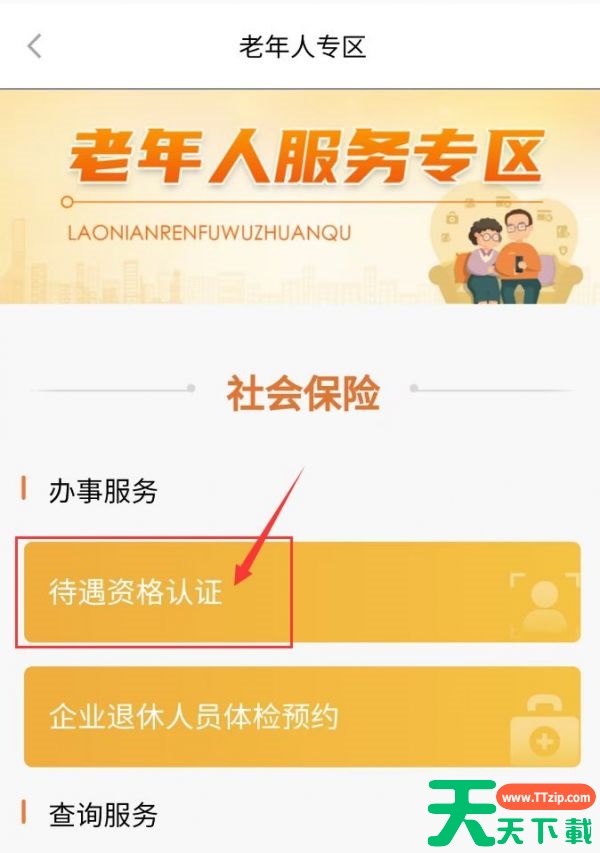 2、打开下载江苏智慧人社APP,选中“老年人专区”。