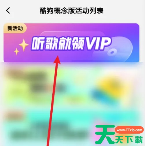 打开酷狗概念版应用,点击右下角【我的】。 在我的界面中,点击【福利活动中心】。 在酷狗概念活动列表界面中,点击【听歌就领VIP】。 最后在听歌领会员界面,点击【去听歌】即可。 @天天下载TTzip 除特别注明外,本站所有文章均为 天天下载 原创,转载请注明出处来自 https://www.ttzip.com/197791.html
