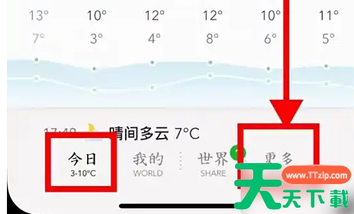 第一步,打开我的天气软件,进入【今日】页面,点击右下角【更多】 第二步,进入页面,点击【设置】 第三步,进入页面,上滑页面,点击【温度计模式】 第四步,进入页面,点击【屏幕常亮】后侧按钮关闭即可。 @天天下载TTzip 除特别注明外,本站所有文章均为 天天下载 原创,转载请注明出处来自 https://www.ttzip.com/197797.html