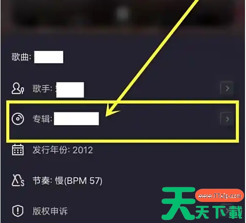 打开歌曲播放页,点击底部【三个点】图标。 进入更多功能页,点击【歌曲信息】选项。 进入歌曲信息页,点击【专辑】选项。 点击【收藏】图标,即可收藏歌曲专辑。 @天天下载TTzip 除特别注明外,本站所有文章均为 天天下载 原创,转载请注明出处来自 https://www.ttzip.com/197801.html