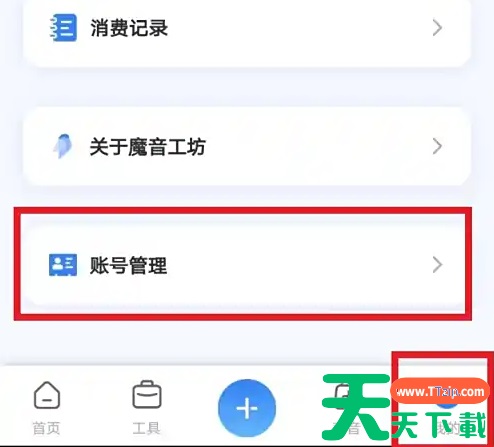 手机打开魔音工坊软件,点击选择右下角我的项目。 我的页面,选择查看账号管理项目。 账号管理页面,点击退出当前账号,提交账号管理退出登录。 @天天下载TTzip 除特别注明外,本站所有文章均为 天天下载 原创,转载请注明出处来自 https://www.ttzip.com/197803.html