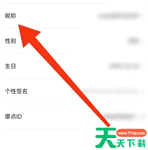 第一步:打开【摩点】APP的首页,点击【头像】选项。 第二步:选择【编辑资料】。 第三步:点击【昵称】选项。 第四步:输入新昵称后,点击【完成】即可修改个人昵称。 @天天下载TTzip 除特别注明外,本站所有文章均为 天天下载 原创,转载请注明出处来自 https://www.ttzip.com/197806.html