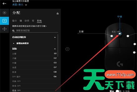 定位到鼠标的按钮设置分配区域,选择你想要重新设置的按键。