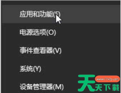 3、如果你觉得操作起来太麻烦的话还可以直接将其卸载,在Win10系统开始菜单右键,选择“应用和功能”按钮。