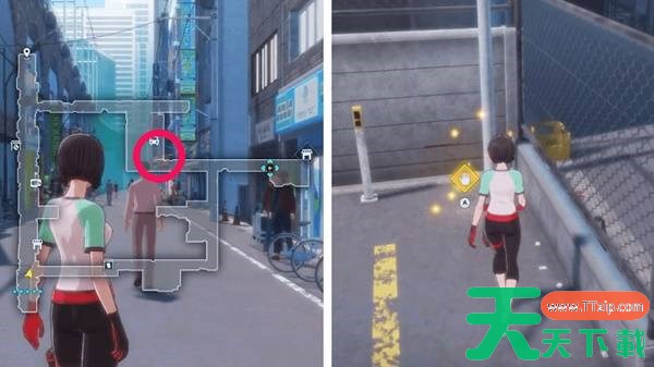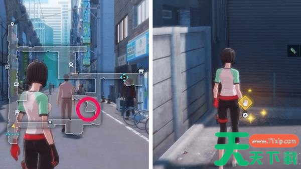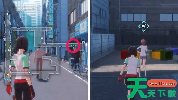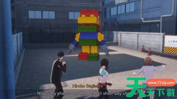 前往秋叶原最东侧区域:某条后巷。鷺坂会站在空地上一堆巨型积木前。