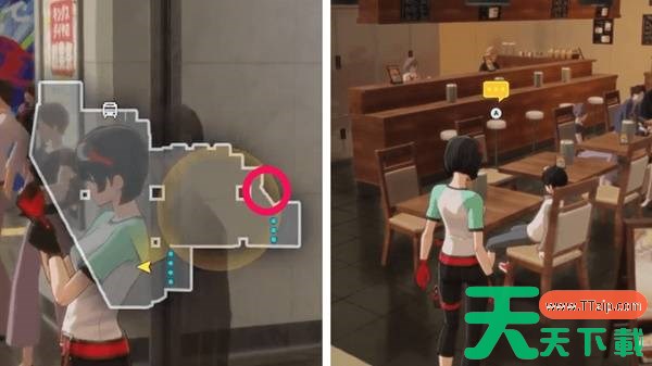 3.前往新宿站东口。第三只失踪数码兽会伪装成坐在小咖啡馆桌边的男孩。