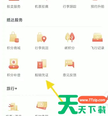 进入海南航空app页面,点击服务大厅按钮。 进入服务大厅,点击抵达服务按钮。 进入抵达服务,点击报销凭证按钮。 进入报销凭证点击邮寄行程单按钮即可。 @天天下载TTzip 除特别注明外,本站所有文章均为 天天下载 原创,转载请注明出处来自 https://www.ttzip.com/198004.html