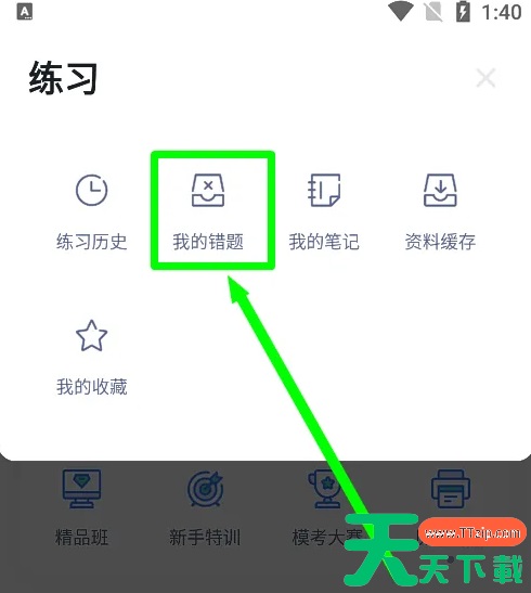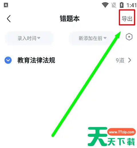 进入练习界面,点击右上方【菜单】图标 进入练习菜单,点击【我的错题】图标 进入错题本窗口,点击【导出】 点击【确定导出】即可导出错题题目 @天天下载TTzip 除特别注明外,本站所有文章均为 天天下载 原创,转载请注明出处来自 https://www.ttzip.com/198007.html