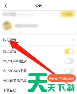 打开手机的喜马拉雅儿童版,然后我们点击右上角的设置 点击上面的账号设置选项,如图所示 之后将QQ的滑动按钮向右滑动,确认绑定QQ就行了, @天天下载TTzip 除特别注明外,本站所有文章均为 天天下载 原创,转载请注明出处来自 https://www.ttzip.com/198019.html