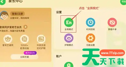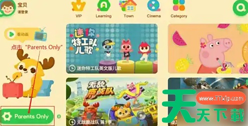 打开爱奇艺奇巴布首页,点击左下方的“Parents Only”家长中心选项;