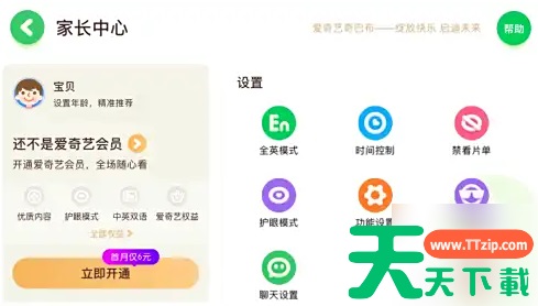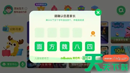 点击红色箭头处的“家长中心” 输入成语,确认你是家长 点击红色箭头处的“小奇星设置” 点击以下位置处的开关 爱奇艺奇巴布小奇星已关闭。 @天天下载TTzip 除特别注明外,本站所有文章均为 天天下载 原创,转载请注明出处来自 https://www.ttzip.com/198034.html