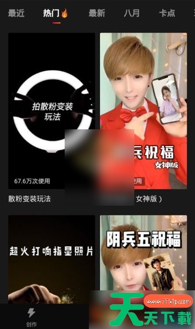 1、打开手机中的快影APP,进入后可以看到热门的模板视频,模板视频我们在应用时,只需要选择自己的素材,将视频中的图片、视频替换成我们自己的;