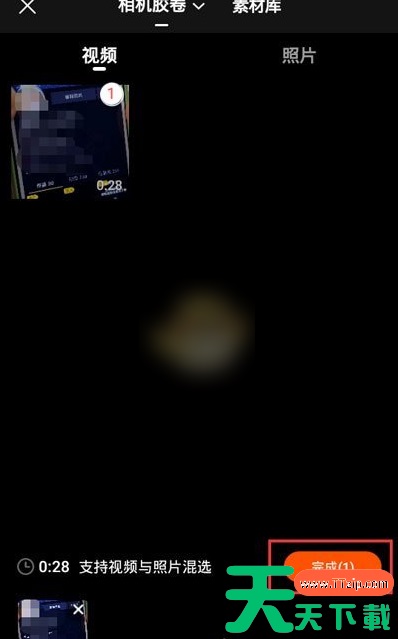 3、然后导入我们拍摄好的视频,或者图片等等,选择好之后点击【完成】;