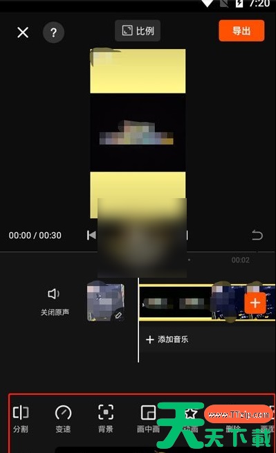 5、最后编辑成功后,点击右上角的【导出】导出编辑好的视频,将其保存在手机中。