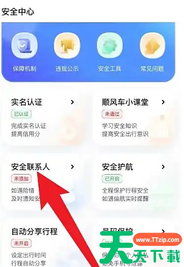 首先在嘀嗒出行app当中点击【安全中心】 在【安全中心】当中选择【安全联系人】 接下来依次填写联系人的手机号和备注,再在下面点击【保存联系人】即可 @天天下载TTzip 除特别注明外,本站所有文章均为 天天下载 原创,转载请注明出处来自 https://www.ttzip.com/198043.html