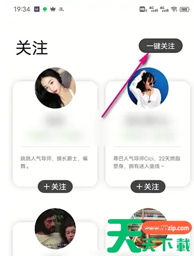 在软件首页,点击底部关注按钮。 进入关注界面,查看对应的博主,点击右上角一键关注。 点击黄色确认按钮,即可完成一键关注。 @天天下载TTzip 除特别注明外,本站所有文章均为 天天下载 原创,转载请注明出处来自 https://www.ttzip.com/198051.html