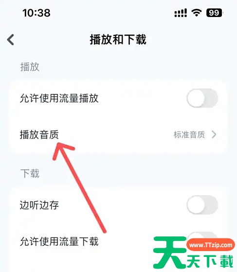 先打开应用进入,点击底部的【我的】 进入我的中心,点击【播放和下载】选项 进入播放和下载页面,点击【播放音质】选项 如下,在播放音质中,勾选【高音质】即可 @天天下载TTzip 除特别注明外,本站所有文章均为 天天下载 原创,转载请注明出处来自 https://www.ttzip.com/198057.html