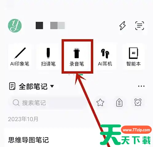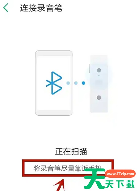 打开印象笔记软件,点击选择录音笔。 录音笔页面,根据提示录音笔靠近手机。 等待蓝牙闪烁,点击开始扫描,等待印象笔记连接录音笔完成。 @天天下载TTzip 除特别注明外,本站所有文章均为 天天下载 原创,转载请注明出处来自 https://www.ttzip.com/198086.html