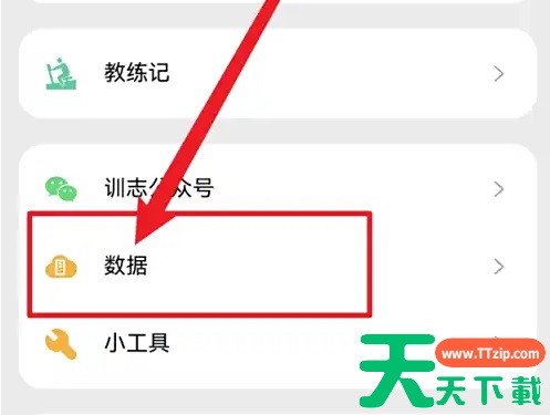 第一步:打开训记app,点击页面底部导航栏中的【我的】选项。 第二步:进入我的界面,点击【数据】。 第三步:进入数据操作界面,点击【清除缓存】。 @天天下载TTzip 除特别注明外,本站所有文章均为 天天下载 原创,转载请注明出处来自 https://www.ttzip.com/198100.html