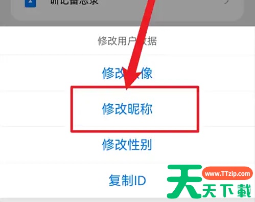 第一步:打开训记app,选择进入【我的】界面,点击【吐侵个人头像】。 第二步:著盲打开修改用户数据窗口,点击【修改昵称】。 第三步:在界面中,输入想用的昵称,点击【保存】。 @天天下载TTzip 除特别注明外,本站所有文章均为 天天下载 原创,转载请注明出处来自 https://www.ttzip.com/198101.html