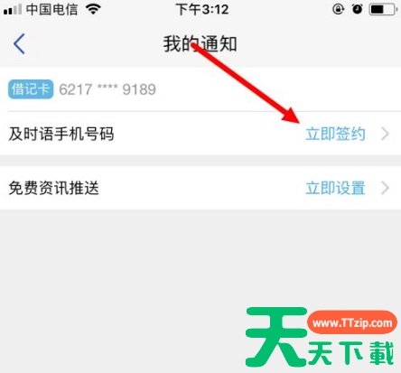 之后会进入 我的通知 ,点击 及时语手机号码后面的 立即签约 。