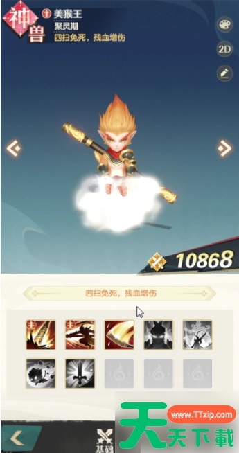 在这个阵容当中,美猴王主要负责输出以及防御,锦鲤则负责增强团队的续航能力,夜巡可以增加团队的移动速度,保证每个回合美猴王都会处于先手状态,天犬属于单体输出角色,可以帮助美猴王补充伤害,保证最后一击能够击杀敌人,这一个阵容的收集难度比较大,对于前期和中期的玩家而言,想要达成这个阵容比较困难。