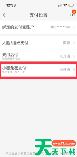淘宝怎么关闭免密支付? 淘宝界面,点击右上角“设置”。 点击“支付” 点击“小额免密支付” 点击“关闭服务”即可 总结: 淘宝界面,点击右上角“设置”,点击“支付”,点击“小额免密支付”,点击“关闭服务”即可。@天天资源网TTzip 除特别注明外,本站所有文章均为 天天下载 原创,转载请注明出处来自 https://www.ttzip.com/198403.html