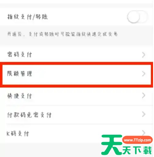打开中国农业银行,在支付页面点击支付设置 在页面中,点击限额管理 在页面中,就可以查看限额额度了 @天天资源网TTzip 除特别注明外,本站所有文章均为 天天下载 原创,转载请注明出处来自 https://www.ttzip.com/198405.html