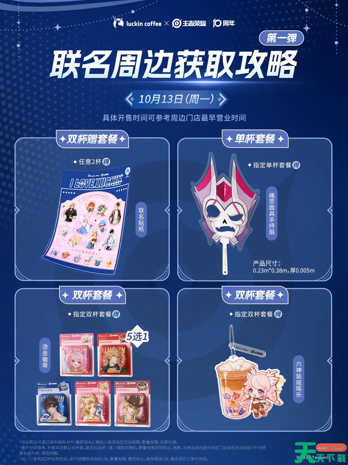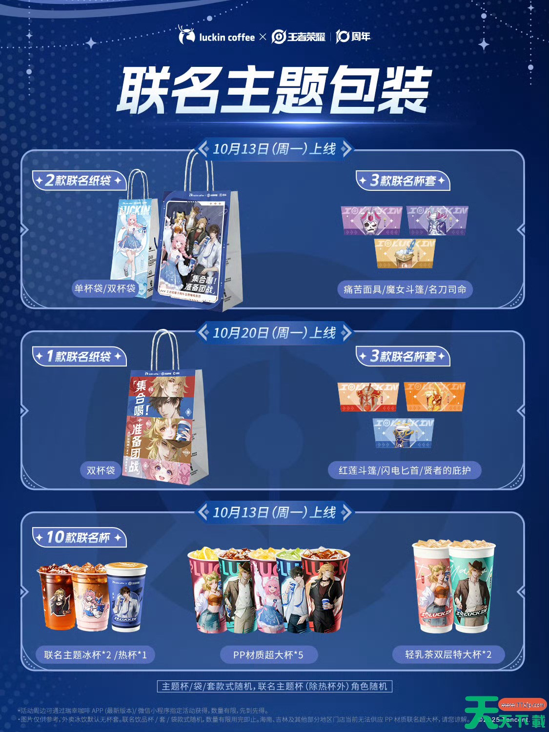 王者荣耀将在10月13日开启与瑞幸的联动,很多玩家不知道有哪些联动内容,有哪些联动周边,下面天天下载为大家带来王者荣耀瑞幸联动介绍,感兴趣的小伙伴一起了解一下吧。