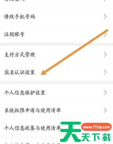 点击设置。 点击实名认证设置。 输入身份信息,点击下一步即可。 @天天资源网TTzip 除特别注明外,本站所有文章均为 天天下载 原创,转载请注明出处来自 https://www.ttzip.com/198477.html