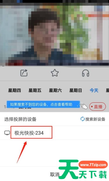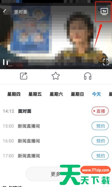首先打开电视,确保手机、电视连在同一个宽带WLAN中。 点击手机中的CCTV手机电视图标,运行该软件。 进入后,点击选择正在直播的电视节目。 点击节目播放页面,然后点击页面右上角的TV投屏图标。 在系统搜索到的设备列表中,选择投屏的设备。 投屏成功!如需要结束投屏到电视,则点击播放页面中的退出按钮即可。 @天天资源网TTzip 除特别注明外,本站所有文章均为 天天下载 原创,转载请注明出处来自 https://www.ttzip.com/198478.html