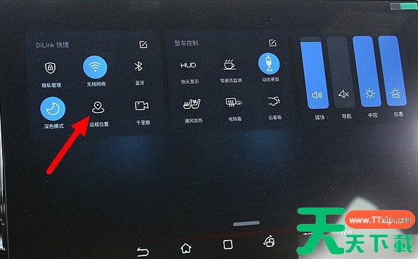2、在页面内找到“远程位置”图标并点击打开,然后打开比亚迪汽车app,点击页面下方的车标按钮进入爱车页面;