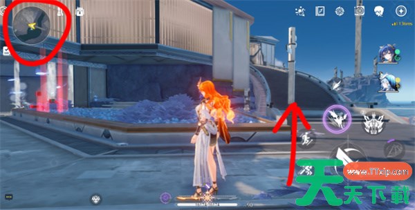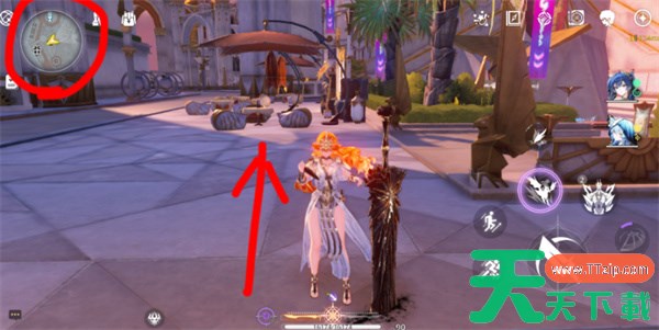 2、从传送点出发,朝小地图北方移动,右侧有楼梯。