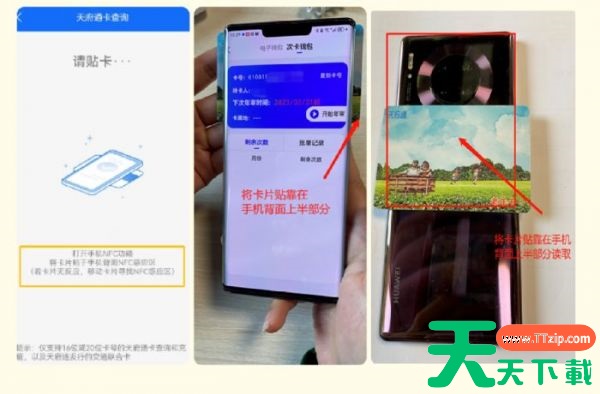 9.请将老年卡重新贴卡至手机NFC感应区位置 (大多数位于手机背面上半部分) ,贴卡后请勿移动卡片,等待完成充次操作