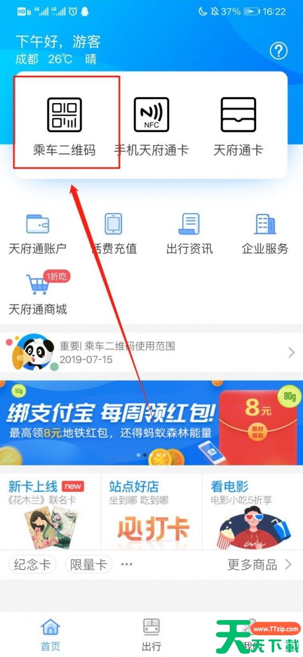 1.在手机的各大应用商城中搜索“天府通”,或长按识别下方二维码下载天府通app;