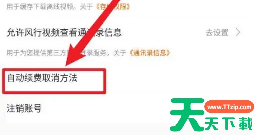 风行影音会员怎么取消自动续费 点击左上角的头像 然后在设置中点击隐私设置 在隐私设置内点击“自动续费取消方法” 进入方法后就可以查看如何取消自动续费 以上就是风行视频哪里关闭续费的方法介绍了,有需要的小伙伴们赶紧试一试吧。@天天资源网TTzip 除特别注明外,本站所有文章均为 天天下载 原创,转载请注明出处来自 https://www.ttzip.com/198835.html
