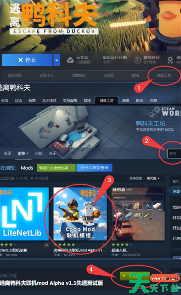 Steam逃离鸭科夫点击创意工坊,搜索联机Mod并订阅