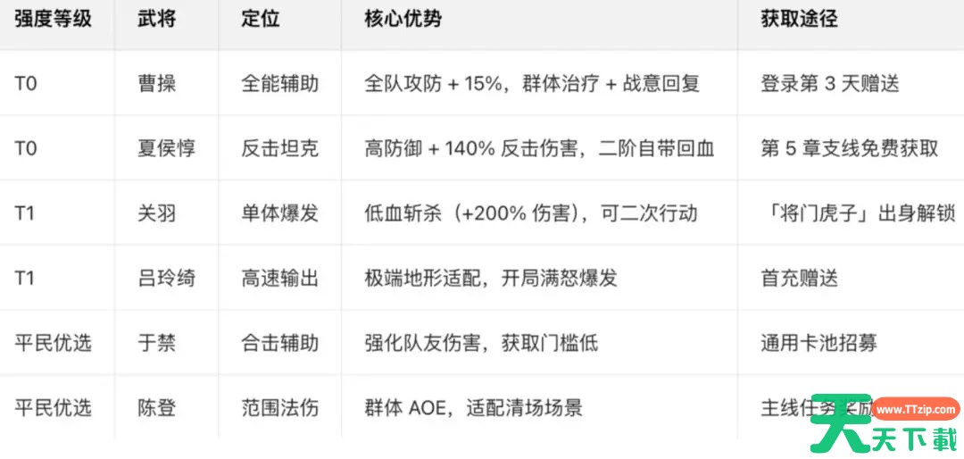 注意:T0 级武将「郭嘉」「荀彧」暂未开放获取,后续活动将上线,可提前预留养成资源。