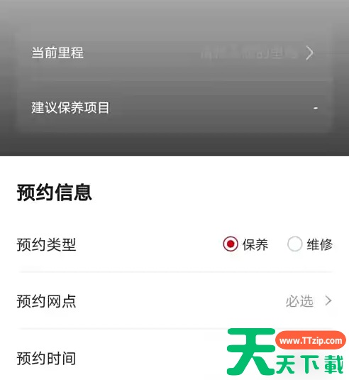 打开 智家APP ,选择 爱车 然后 更多功能,然后选择智能维保, 就可以进入 预约保养菜单了 就可以进入 预约保养菜单 如下 @天天资源网TTzip 除特别注明外,本站所有文章均为 天天下载 原创,转载请注明出处来自 https://www.ttzip.com/198952.html