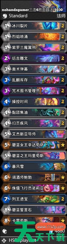 最近大家都用什么卡组上分呢?炉石传说最近有什么强力的上分卡组呢?相信大家都想了解,下面为大家带来的炉石传说面具法卡组内容,感兴趣的玩家们千万不要错过哦! 炉石传说面具法卡组10月 面具法 玩法是用列王遗宝发现蝙蝠面具(约50%概率),用蝙蝠面具点扫页疾风,可以直接打出63点伤害((1+2+3+4+5+6)*3=63) AAECAf0ECO/TBPHTBOHrBtuXB+SlB+WlB+elB9CmBwuyngbTngaG5gablgeflgf6mweHnAfYngfopQfRpgeLsQcAAA== 以上就是关于炉石传说面具法卡组怎么样的全部内容了,希望能为各位玩家们带来帮助,想要了解更多游戏攻略及资讯请持续关注天天下载(ttzip.com)。 @天天软件站Ttzip 除特别注明外,本站所有文章均为 天天下载 原创,转载请注明出处来自 https://www.ttzip.com/199224.html
