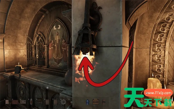2、将审判之手旁边的火把倒置,即可获得隐藏在火焰中的令牌。