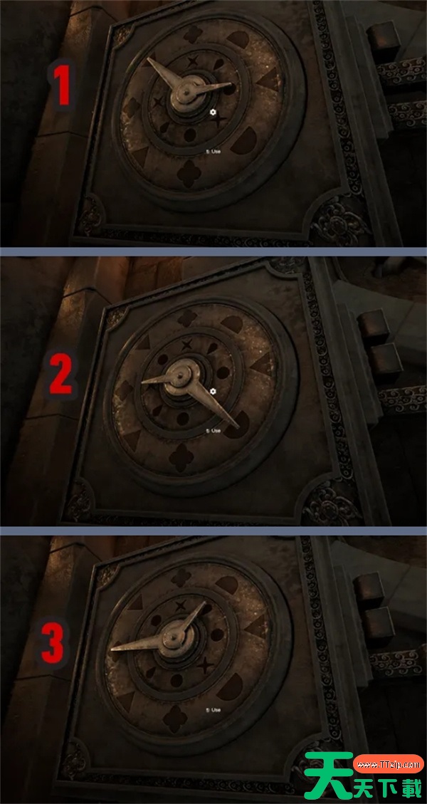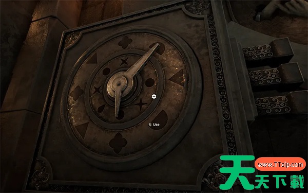 移动时钟的指针,使它们按照编号指向这些符号中的形状,现在可以探索这个房间了。