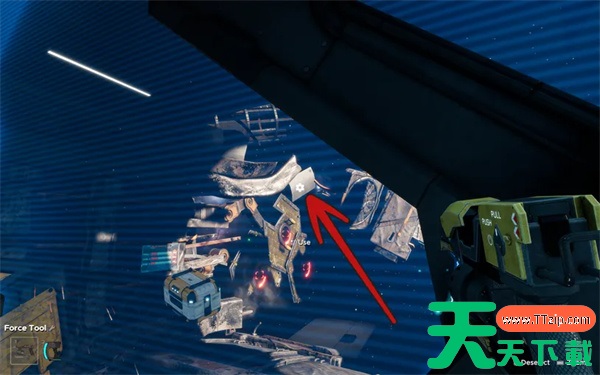 6、附在太阳能板旁边漂浮在太空中的一块碎片上。使用力场工具将其拉近。