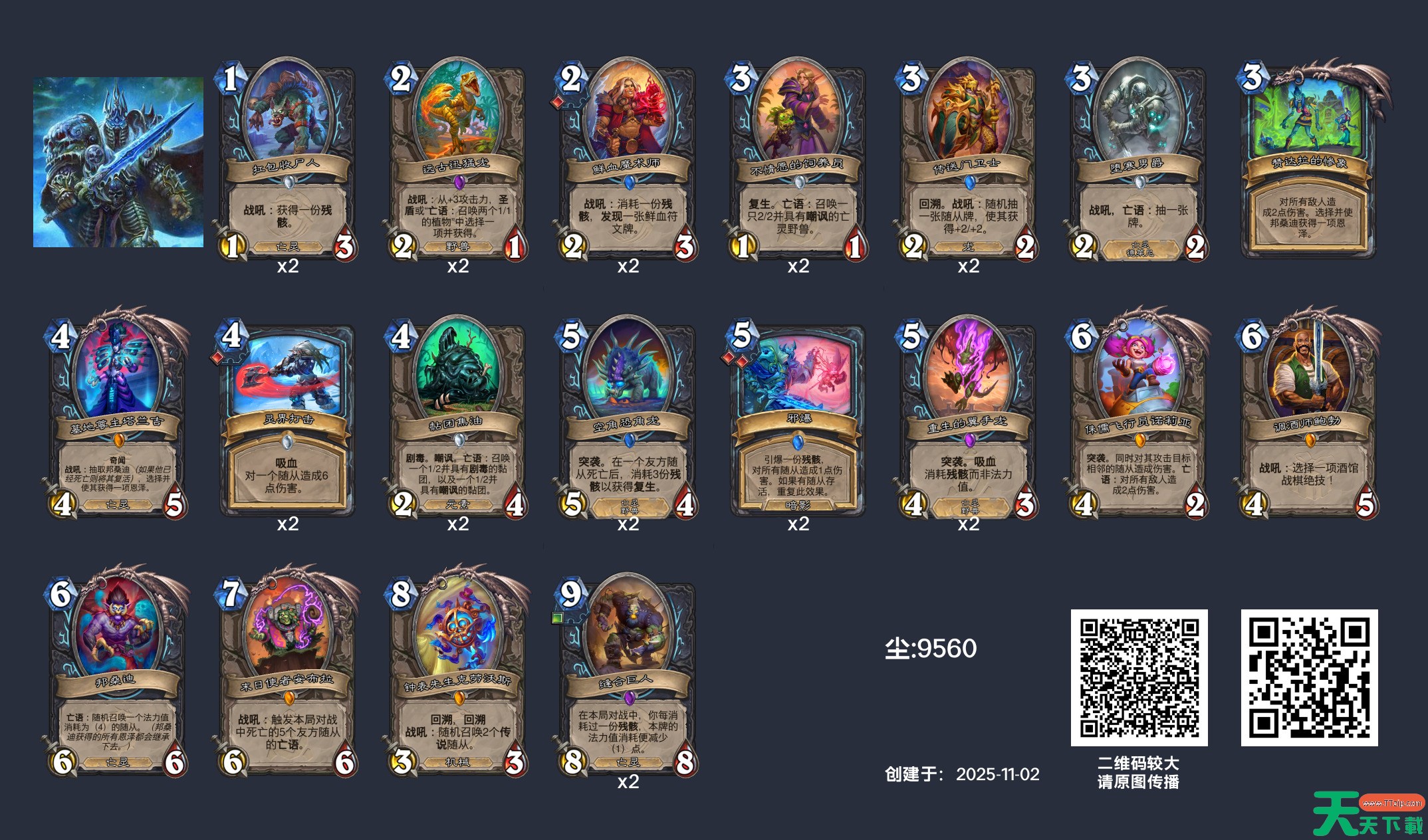 炉石传说穿越时间流版本即将上线,而在抢先体验服已经有不少的玩家用新卡组上分了,那么炉石传说穿越时间流有什么强力的上分卡组呢?相信大家都想了解,下面为大家带来的炉石传说邦桑迪DK卡组内容,感兴趣的玩家们千万不要错过哦! 炉石传说邦桑迪DK卡组11月 邦桑迪DK 1998场53.2%胜率 AAEBAfHhBAiH9gTh6wbblwf1mAf3qgf7qgf8qgfGrgcL9OMEsvcEmIEF2OUG5uUGupUHopcH0JsHh5wHnp4HkqQHAAA= 以上就是关于炉石传说邦桑迪DK卡组怎么样的全部内容了,希望能为各位玩家们带来帮助,想要了解更多游戏攻略及资讯请持续关注天天下载(ttzip.com)。 @天天软件站Ttzip 除特别注明外,本站所有文章均为 天天下载 原创,转载请注明出处来自 https://www.ttzip.com/200120.html